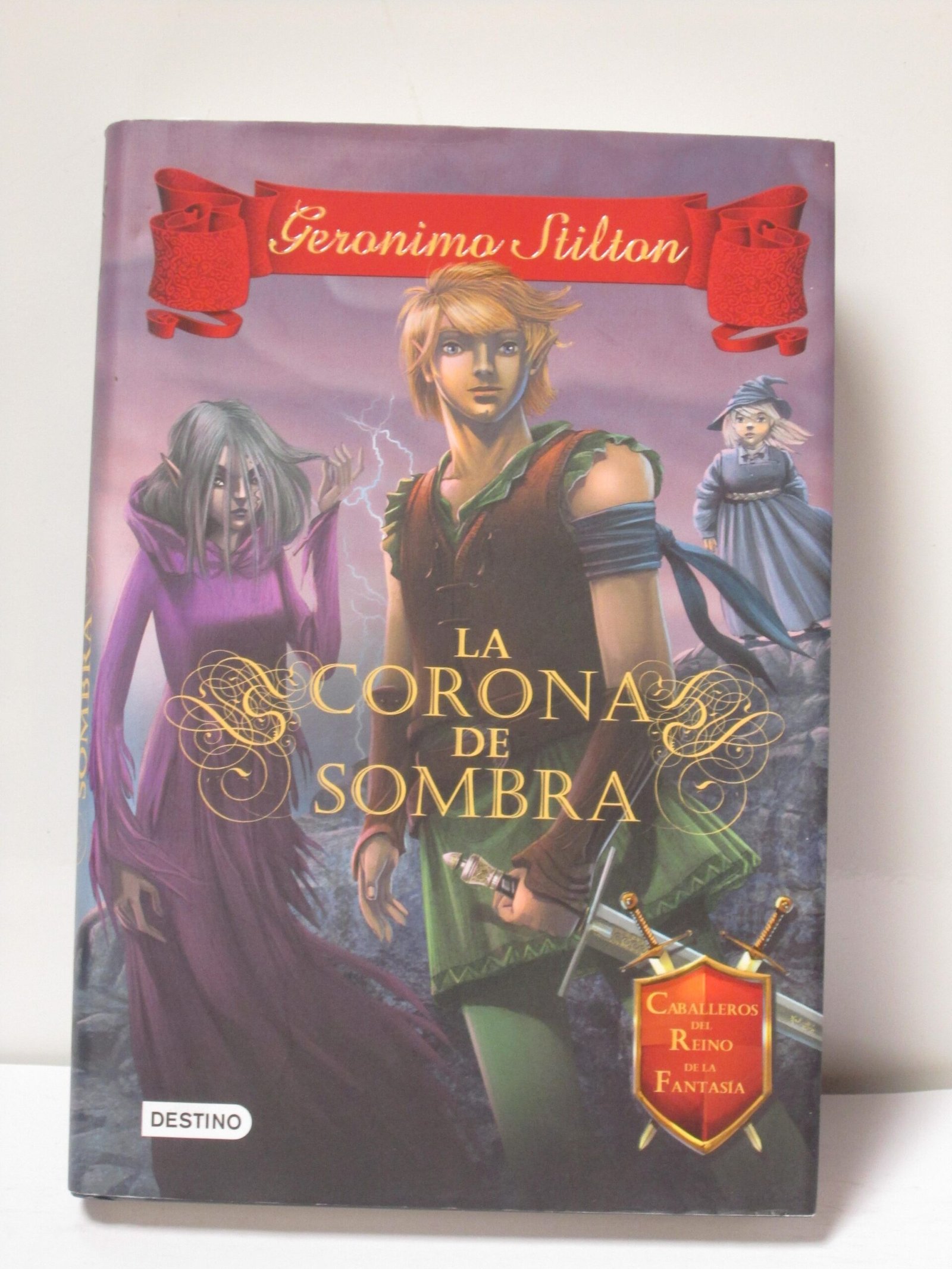 Sinopsis: Geronimo Stilton. Saga Caballeros del Reino de la Fantasía 4. Un misterioso objeto de poderes peligrosos y oscuros, la Corona de Sombra, está en manos de la pérfida reina de las brujas. Para impedir esto, los caballeros tendrán que luchar con fuerza y valentía.